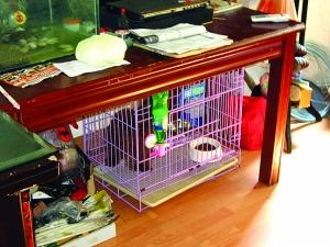 昨日上午,记者随郭警官来到现场时,发现过道的吹风机已经关闭,郭警官让一位中年男子打开三楼的门后,记者看到几个打开门的房间零乱地堆放着杂物,地面留有未干的水渍,但没有看到一只狗。正当记者询问时,一个房门被锁死的房间突然传来狗叫声,中年男子赶忙解释说,那条狗是他准备送给儿子的,打开房门后,记者看到靠床的一个铁笼里有一只棕色的“泰迪”。