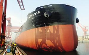 昨天上午,由中船重工天津新港船舶重工为法国船东建造的18万载重吨散货船首制船LEOPOLD LD号在拖轮的拖带下缓缓驶离临港造修船基地50万吨船坞。这艘长292米、宽45米、航速14.5节的红色巨型散货船刷新了本市造船记录,成为目前天津历史上建造的最大吨位船舶。而与此同时,新港船舶重工出口美国的4万吨级节能环保散货船也同期出坞。