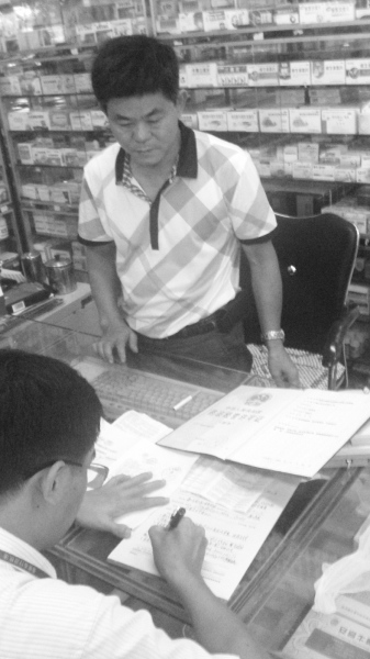 随后,记者联系海口市食品药品监督局稽查支队药械大队的执法人员前来检查。执法人员出示了《行政执法证》,对海南裕康药业有限公司龙华路分店进行检查。记者从执法人员的《现场检查笔录》中了解到,执法人员在该药店销售柜台查封了两瓶人血白蛋白,该药店不能提供以上标示的人血白蛋白的购进票据和药品检验报告书。