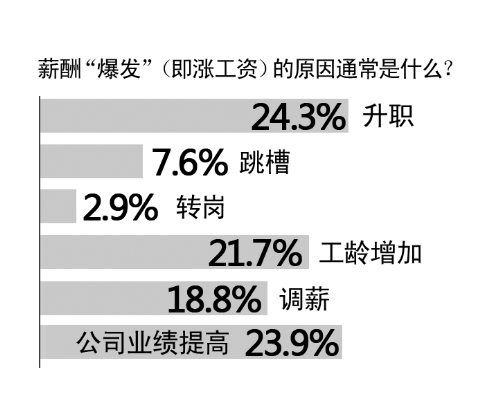 在接受调查的职场白领看来,第一个薪酬“爆发点”通常出现在入职第三年。