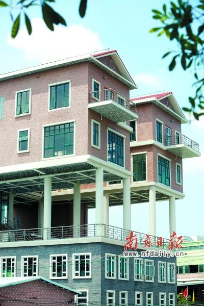 东莞石碣惊现“空中吊脚别墅”。图为涉事房屋。 胡国球 摄