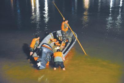 消防官兵在江面搜救失踪者。