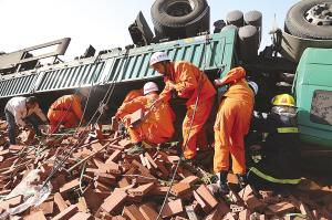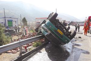 甘肃柳高速定西段货车侧翻 一车砖埋了母女俩(图)