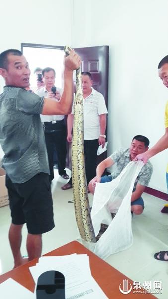 23公斤大蟒蛇溜进办公室 民警将其放归山林(图)