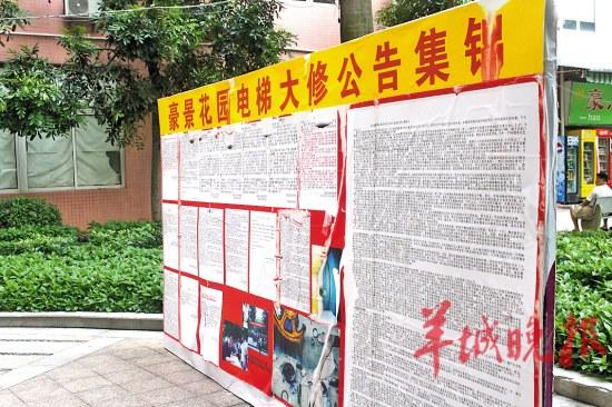 在豪景花园几座楼宇的电梯门口,记者都发现有一张9月2日贴出的物业公司的“公开签名公告”。该公告一方面指责不交钱的业主“爱占便宜,想沾邻居的光,不愿出资维修电梯,坐享其成”,另一方面则恳请已交费的业主签名授权,同意物业公司对电梯采取IC卡强制管理措施,即限制未交钱业主自由使用电梯。
