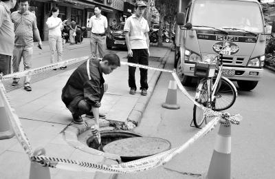 武汉一闹市区窨井天然气泄漏两天没人修(图)