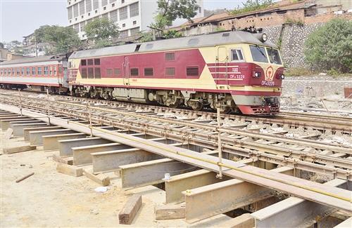 昨日上午11时许,记者来到长湖路断头路,随后左转入长堽路六里,然后进入长堽火车站货场东边(正对长湖路断头路)看到,在既有湘桂铁路的南边,一个大坑内有一个大框架,框架为钢筋混凝土结构,大坑内有一台钩机在铲泥土,现场一片热闹的施工场景。