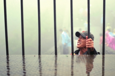 19日一早,天空下着小雨,八达岭长城上雾气昭昭。北六楼到北七楼之间,是王桂明的“责任区”。上午9点,游人陆续登上长城,王桂明便开始穿梭于人流中,收集起被游人随手丢弃的水瓶和纸屑。