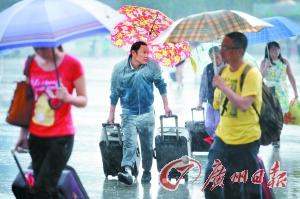 旅客冒雨赶到广州火车站候车。记者莫伟浓 摄
