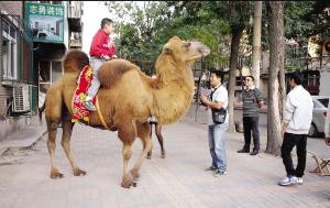两男子牵着骆驼招揽路人拍照 日收入数百元(图)