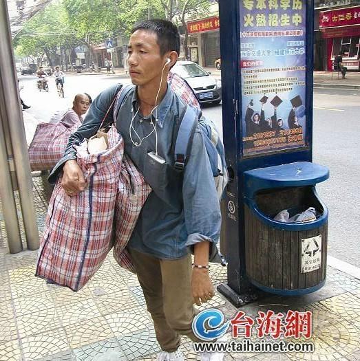 前几天,这位日系范的拾荒者出现在禾祥西路上,引起了路人围观。拾荒者告诉导报记者,他姓周,今年38岁,是湖北宜昌人。老周原本计划来厦门找份工作,25天前从深圳来到厦门,途中丢失了包裹和证件。无奈之下,只能暂时靠拾荒维持生活。