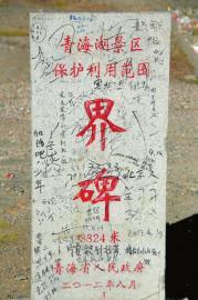 成都市民杨寅到达青海湖后,拍出了让人痛心的画面。“我为了来到这片神圣的土地,坐了近25个小时的火车。”杨寅说,因为朋友的介绍和对青海湖的向往,他和朋友搭乘着西宁当地人的汽车翻过了橡皮山。然而当他到达青海湖的地界时,一个被游客写满文字的界碑让他心痛。界碑上写满了游客的名字、车牌号。“从这些话中,看得出是游客征服3824米海拔的骄傲。”殊不知他们引以为荣的行为,对当地人是一种羞耻。