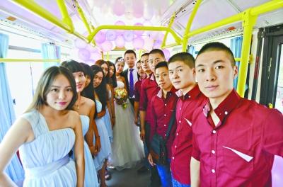 昨日,一对新人租用公交车举行婚礼 见习记者胡冬冬 摄