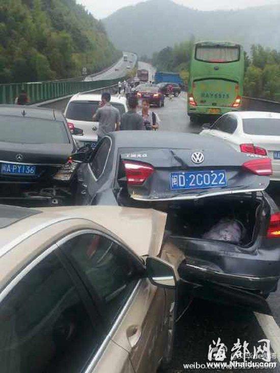 昨天下午1点40分前后,在福银高速A道塔前段福州往南平方向,发生多点多车碰撞追尾事故。
