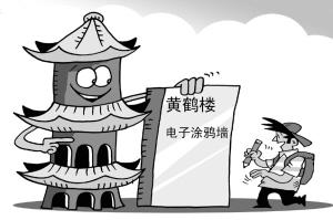 游客登上黄鹤楼,也能写一笔“到此一游”,不是在柱子上,而是在电子屏上。黄鹤楼公园管理处昨天说,黄金周期间,“电子涂鸦墙”投入使用后,主楼柱子、墙壁上没有新的刻画痕迹了。 (10月7日《武汉晚报》)