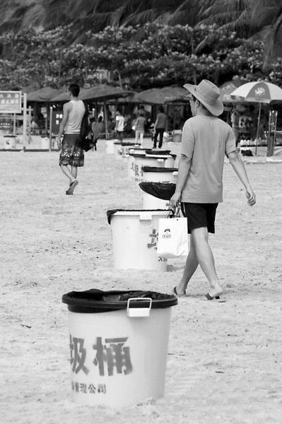去年中秋节,因为沙滩缺少垃圾桶以及游客的不文明习惯,中秋赏月结束后三亚大东海沙滩留下50多吨垃圾,严重污染了公共海滩,让舆论一片哗然。在吸取了去年的教训后,今年“十一”期间,三亚大东海管理方在长达1.8公里的沙滩上摆放了上百个垃圾桶,应对游客乱丢乱扔,有效解决了游客乱扔瓜皮纸屑等垃圾的问题,为前往这里参观游览的游客提供了一个良好的旅游环境,获得了市民、游客的普遍赞赏。
