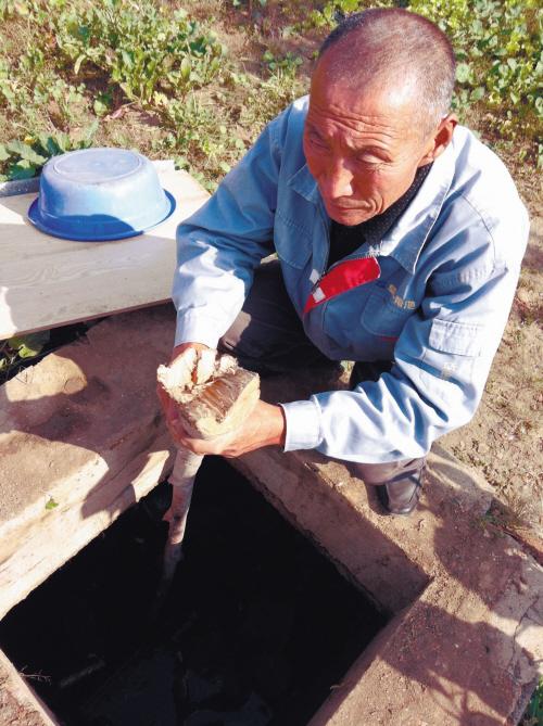 昨日,赵广德将一根木杆探到菜窖底,抽出木杆测量,菜窖深2.2米,里面积水深达1.1米。“如果菜窖里没有积水,我外孙女掉进去可能会摔伤,但应该不会被摔死。”望着菜窖里漂浮着的一块被外孙女踩下的木板,赵广德无比心痛。