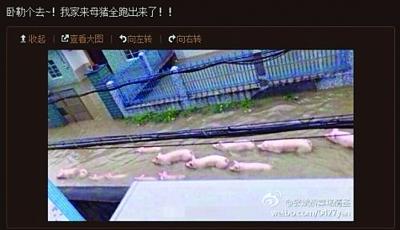 宁波网友惊呼自家养的母猪趁机逃跑。 网络图片