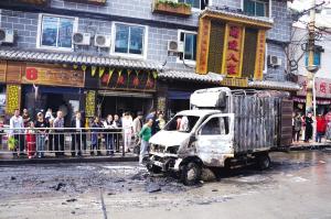 上午10时许,记者赶到现场,火势已完全控制,但整个货车已被烧成了骨架。司机杨先生的两只胳膊和脸部均不同程度烧伤,目前正在医院接受治疗。