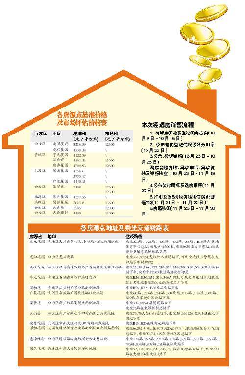 本次推出的房源点包括黄埔区的瑞东花园及分布各区的分散房源。除了1344套位于瑞东花园、基准价为4708.95元/平方米的电梯房外,还有74套分散房源,其中白云区集贤苑项目的楼梯楼基准价仅为2480元/平方米。 文/记者赖伟行 通讯员穗房宣