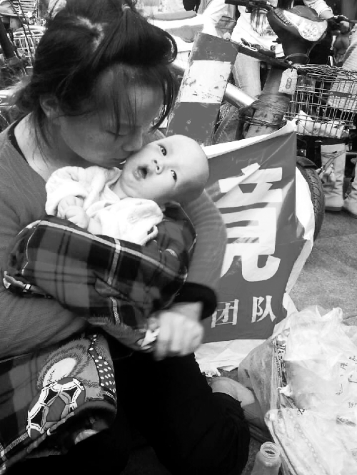 年轻妈妈为救脑瘫儿沿街乞讨 市民争献爱心(图)