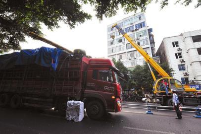 撞上限高栏的是一辆宜宾籍货车,车上运着轮胎的大货车,因为“个子太高”,被卡在限高栏上,动弹不得,后面公交车、私家车等全部被堵得寸步难行。现场交警称,这条道路是过境通道,这种大型货车是不允许通过翠屏路的,货车早上7时左右被卡在那里,为保证安全只有暂时将道路封闭施救。经过施救,上午8点40分左右,在起重机的帮助下,货车成功通过该路段,堵塞了2小时的交通才逐步恢复正常。