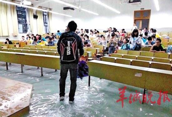 在同济大学,教学楼的楼梯上临时出现“瀑布”,有些教室里水深大概5至10厘米。网友@liu-小雨调侃:“又淹了又淹了,每次下雨必淹,同济用它的排水系统为我们诠释了校徽的涵义,什么是同舟共济……不就是大家一起划船上课么”。