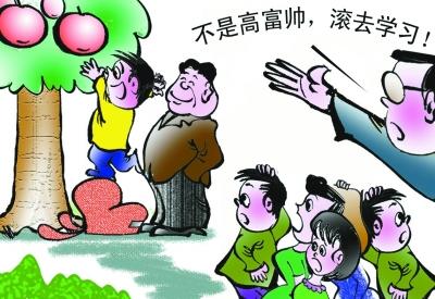 或许有人说,“高富帅”标语是畸形社会价值观投射在校园的一种映像,谁也无能为力。诚然,校园不是真空,也不应该成为真空,但教育者不能漠视畸形、片面价值观对学生的负面影响。班级要有班级文化,学校更要有校园文化,其中最重要的就是价值坚守,不应沦为世俗风气的俘虏,甚至迎合献媚。(马方文 陶小莫图)