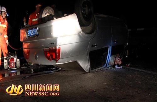 小轿车四脚朝天6名乘客受伤被困。
