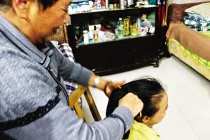 给女儿梳头