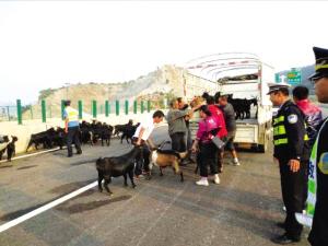 几十分钟后,转运车辆到达现场,中队民警、路政人员及当事人亲属一起将羊群全部安全转运。(袁金年 雷绍洪)