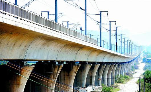 武黄城铁为双线,自武汉站引出,途经东湖高新开发区、鄂州、黄石和大冶等10个车站,正线全长97公里,设计速度200公里/小时以上。(记者 杨平 摄)