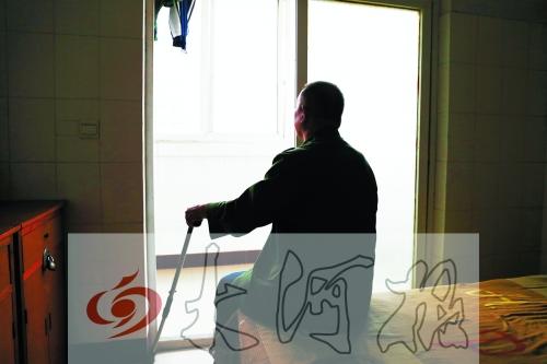 在某敬老院,一位老人大部分时间都坐在床上看着窗外。