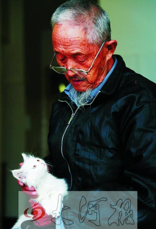 敬老院一位老人时常“与猫同乐”打发时间