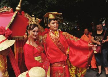成都街头现复古中式婚礼 凤冠霞帔八人大轿(图)
