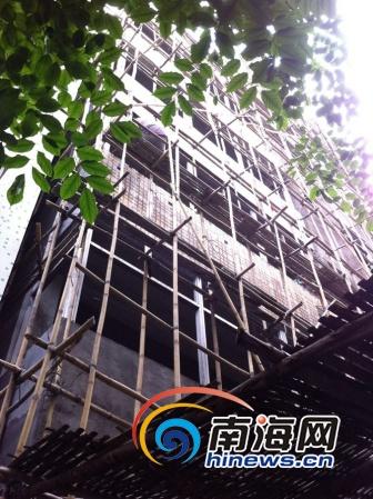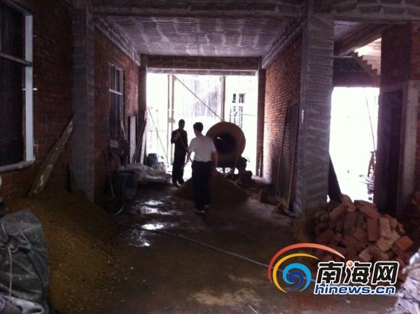 海口一处违建施工掉落沙石 行人路过提心吊胆