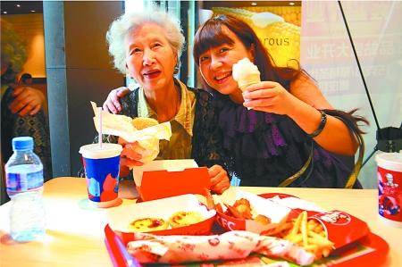 昨日,渝中区,曾女士带母亲在餐厅吃饭,陪她度过一个温馨的老年节。 记者 李化 摄