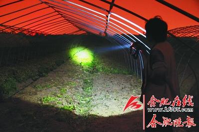 在包河区骆岗街道高王村,60岁的沈布九承包了村里6亩地,种植特种蔬菜。13日晚8时许,一个意外发现,让这位老实菜农惊出一身冷汗。