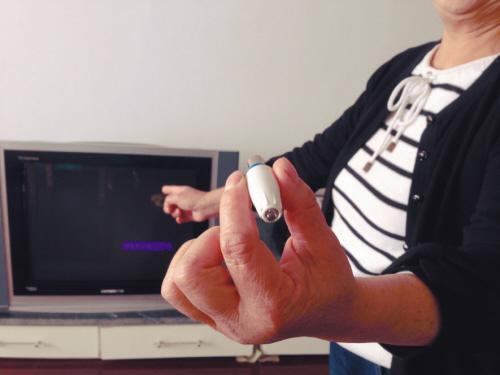 展会室内中间过道位置被围得水泄不通,梁女士定睛一看,一名男子正在销售一个U盘大小的电视节目接收器。男子旁边停着一部电动车,车边摆着一部平板电视机。男子称,此物是目前最先进的高科技产品,插到电视上后不用任何电线,利用数码技术就可接收国内外80个台的电视节目,该接收器20元一个,两人“团购”则15元一个。“神器”带回家就再也不用每年交费看电视了,这下让现场老年人直心动。