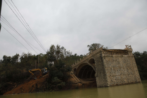 桥梁垮塌后,为解决周边群众出行,10月8日,公路部门租用民船运送两岸来往群众,并在旱坑桥左侧绕白盆珠水库库区山麓边缘修筑便道,17日该便道完工实现简易通车。(完)