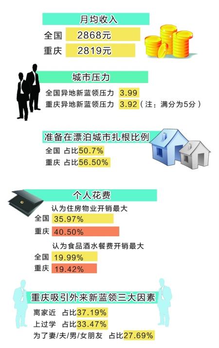 【报告】到2013年新蓝领队伍中本科以上学历达13.36%,大专学历者达30.46%,但高学历并没带来高收入,6成以上新蓝领月薪不足3000元,5000元以上的比例仅为10.50%。全国新蓝领月均收入2868元,而重庆则为2819元,排名第13位。