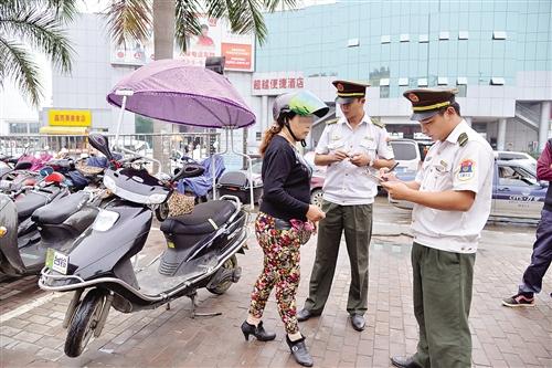 女子开电单车非法营运被查处 本报记者 段柳建 摄