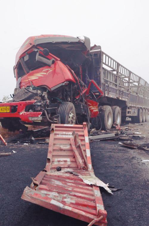 浓雾致高速三十多辆大货相撞 事故现场长达1公里