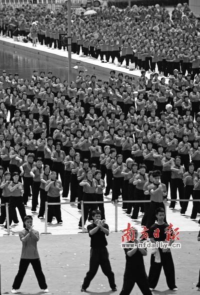 今年8月,5000人在佛山世纪莲表演,刷新全球最多人打咏春纪录。南方日报资料图