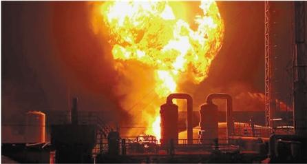 大火逐渐蔓延到了隔壁的107号车间,那里还堆放着大量原料,如果被大火殃及,后果不堪设想。消防官兵立即对现场进行疏散,并组织人员转移堆放的原料。随着增援力量到来,消防官兵集中兵力在爆炸车间四周架起多门移动水炮,对起火的车间形成围攻之势。