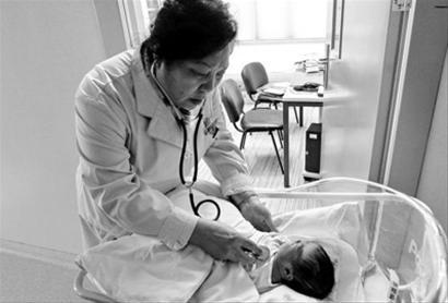 昨日,沈阳市儿童医院重症医学科新生儿病房魏主任正在为弃婴检查身体状况。北国网、辽沈晚报记者 王洋 摄
