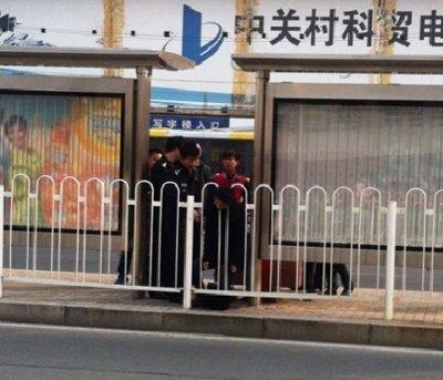 北京中关村一女子头卡公交站护栏 受伤正抢救(图)