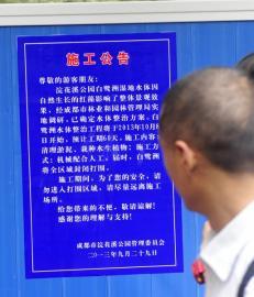 昨日,华西都市报记者特别从浣花溪公园北门进入,只见通往白鹭洲的湿地入口已经被围挡封闭,上面贴有《施工公告》。公告显示:白鹭洲湿地水体受自然生长的红藻影响,将进行60天的水体治理,清理淤泥,并栽种可以净化水质的水生植物。