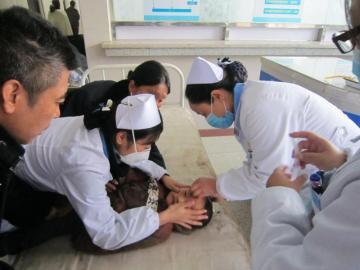 抢救昏迷的小孩。