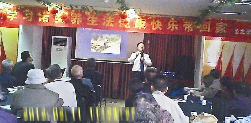 图为:讲师在讲座中渲染疾病危害以及产品功效